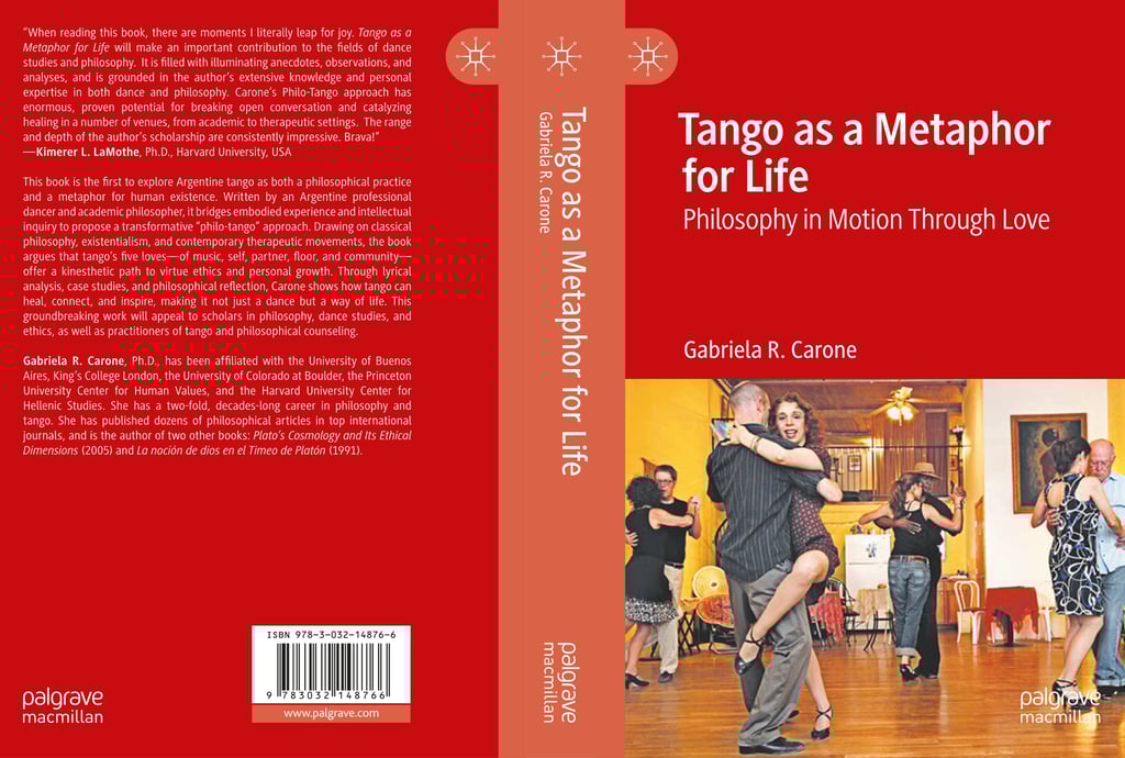 Gabriela R. Carone, Ph.D., has been affiliated with the University of Buenos Aires, King's College London, the University of Colorado at Boulder, the Princeton University Center for Human Values, and the Harvard University Center for Hellenic Studies. She has a two-fold, decades-long career in philosophy and tango. She has published dozens of philosophical articles in top international journals, and is the author of two other books: Plato's Cosmology and Its Ethical Dimensions (2005) and La noción de dios en el Timeo de Platón (1991).